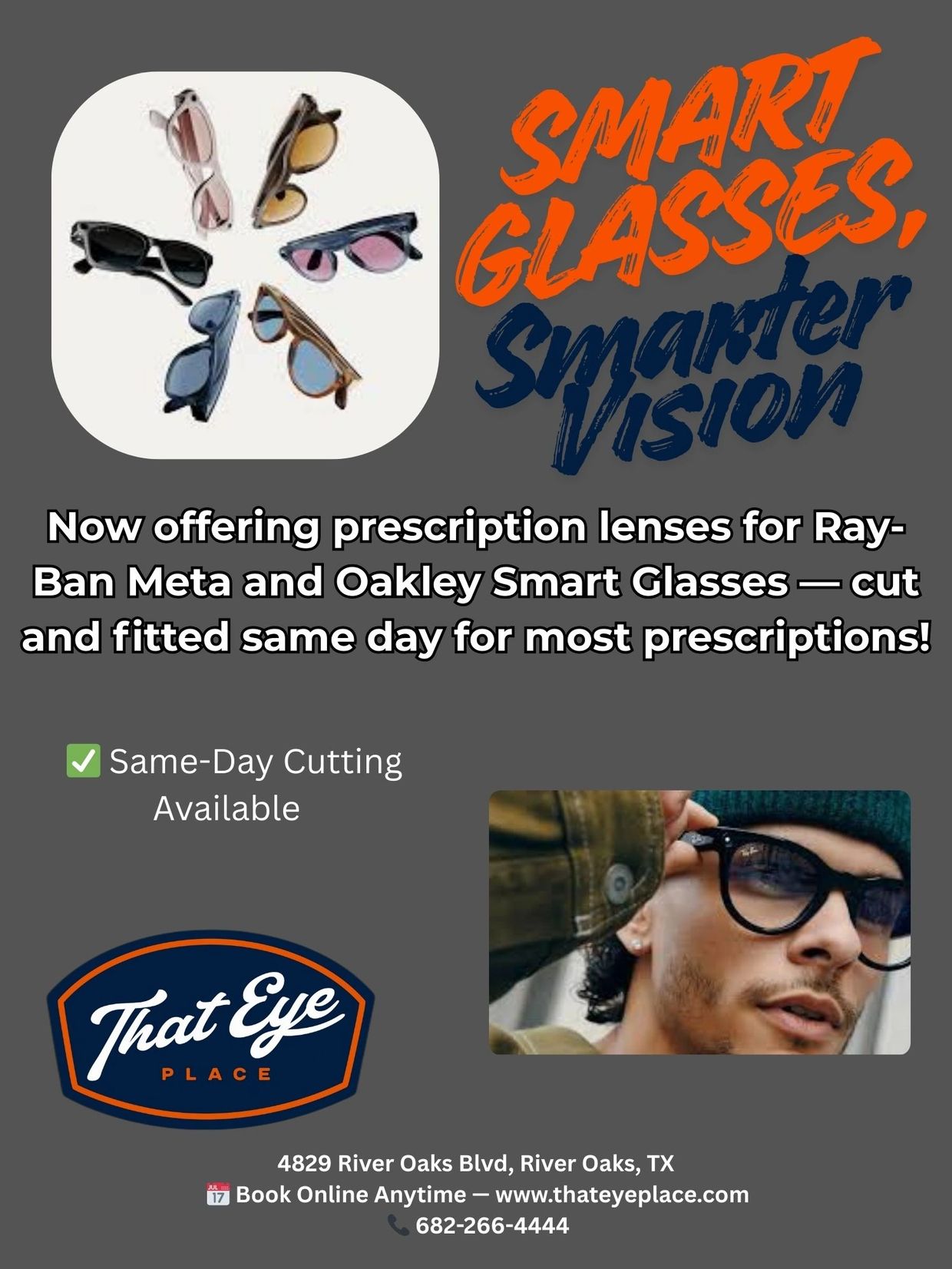 We’re excited to announce that we can now cut and fit prescription lenses for smart eyewear, with same-day service available for most prescriptions. That means no long waits or online guessing games — just fast, precise, professional service by your local ABO-certified optician.